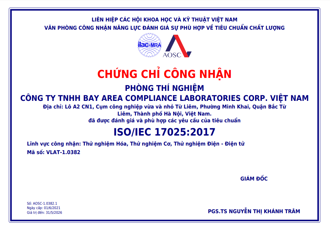 BACL越南分公司成立于2016年,坐落于越南首都河内市和第一大城市胡志明市,现拥有员工100+人,占地面积3000m2。BACL越南河内实验室是倍科集团在东南亚地区继台湾(汐止/林口)、韩国BWS实验室布局之后的又一个重要站点。BACL越南河内实验室严格按照ISO/IEC 17025质量管理体系建立,早在2019年就获得了越南AOSC认可机构的认可。BACL越南河内实验室总面积约2000m2,包含RF无线射频实验室、化学实验室、安规实验室、可靠性实验室、能效实验室、玩具实验室、物理性能实验室、失效分析实验室等,可为广大客户提供一站式检测认证解决方案。BACL越南河实验室配备了数千台精密进口仪器,包括德国R&S、美国Keysight和AR、日本岛津、安捷伦等国际知名厂商的尖端测试仪器,是东南亚地区最具实力和公信力的检测认证机构之一。